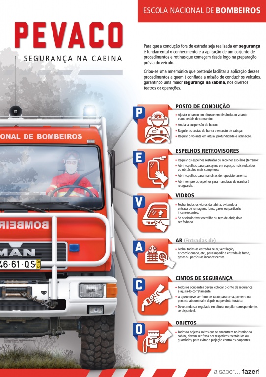 Promover os procedimentos de segurança rodoviária nas mais diversas operações de socorro, junto dos operacionais que conduzem veículos, é o objetivo de dois cartazes pedagógicos produzidos pela Escola Nacional de Bombeiros (ENB).