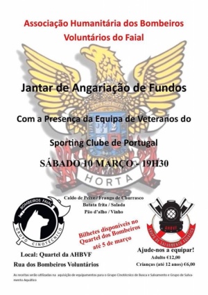 Neste contexto, a AHBVF vem pedir, uma vez mais, a inestimável colaboração da população faialense, apelando à sua participação neste Jantar de Angariação de Fundos, o qual irá contar com a presença da Equipa de Veteranos do Sporting Clube de Portugal.