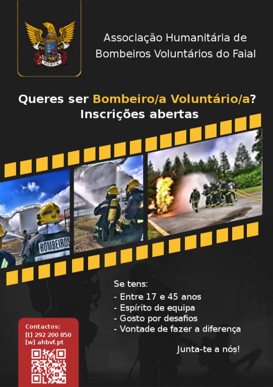 A Associação Humanitária de Bombeiros Voluntários do Faial (AHBVF) relembra que estão abertas as inscrições para bombeiro/a voluntário/a.